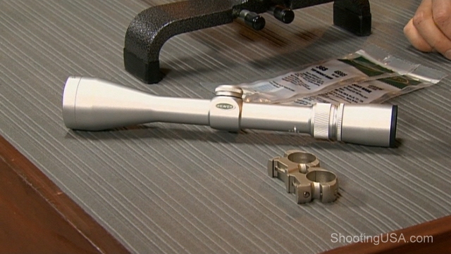 Now, let me show you the new optic. This is from Weaver, from their 40/44 line. It’s a three-to-ten by 44 variable power optic. In addition to that, I have a set of Weaver bases and Weaver G5 steel rings. The advantage here is that all of these parts work together and allow for the full adjustability of the optic once it’s mounted up. Something that wasn’t allowed by the other combination.