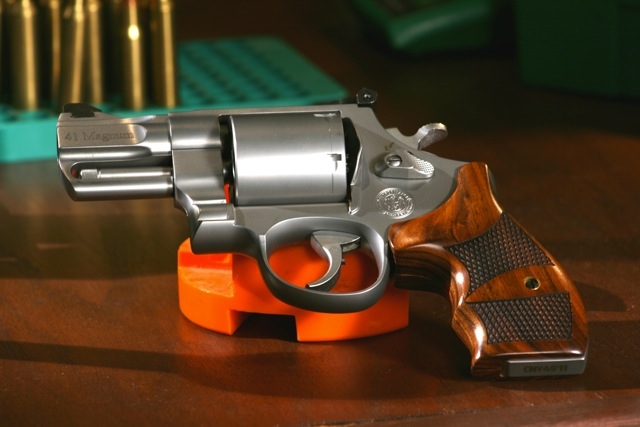 The Model 657 is chambered in .41-magnum. 41 is the caliber that’s more powerful than .357 Magnum, but without as much recoil as Dirty Harry’s 44 Magnum. The .41 round has devastating personal defense power and is large enough for hunting. The 657 has 2.6 inch barrel, its made of stainless steel with a six round capacity. In addition to a personal defense option, it’s also a great trail gun option. And as a Performance Center product, it has an excellent trigger and a tuned action.