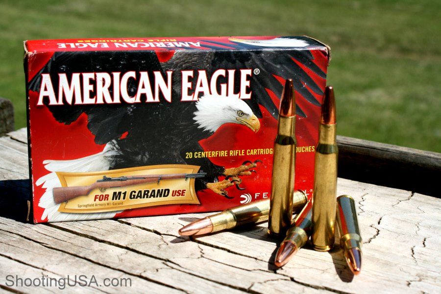 Federal American Eagle Match Ammo. American Eagle 30-06 designated as match ammo for the Garand and the ’03 Springfield. The round is built to Federal Premium specifications, but priced for competitors who burn up more ammo than the average hunter. Box of 20 is about $20.