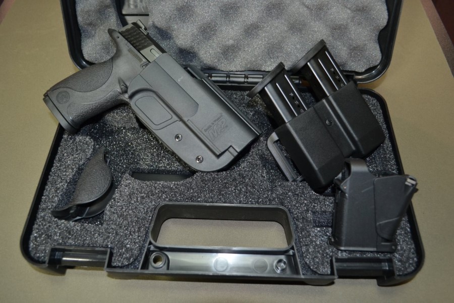We mentioned that Smith & Wesson has been supporting and promoting IDPA competition for years and here’s one way they’re doing it. This is a ready to compete kit with everything you need to step to the start line to compete, everything except a vest. This is the M&P9 version. There is also the .40 cal range kit. Start with the four and a quarter inch M&P with low profile white dot sights. The kit includes three magazines, the maximum you can use in IDPA. And you get a Bladetech IDPA legal holster and mag pouch. And for convenience, there’s even an UpLULA magazine loader to save your thumb.